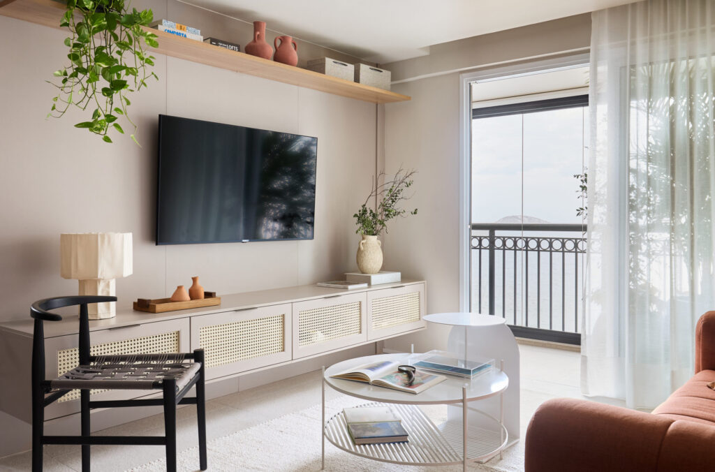 O Apartamento Wave é um projeto que une o propósito de ser um refúgio de afeto com a funcionalidade de uma hospedagem. Localizado em Ipanema, o apartamento foi concebido para se integrar à paisagem, permitindo que a beleza do Rio de Janeiro se torne parte da experiência diária.
